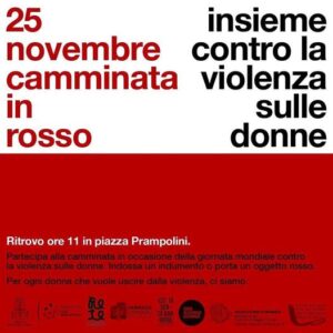 Sabato 25 novembre dalle 11 alle 12 CAMMINATA IN ROSSO contro la violenza fisica e verbale nei confronti delle donne.
